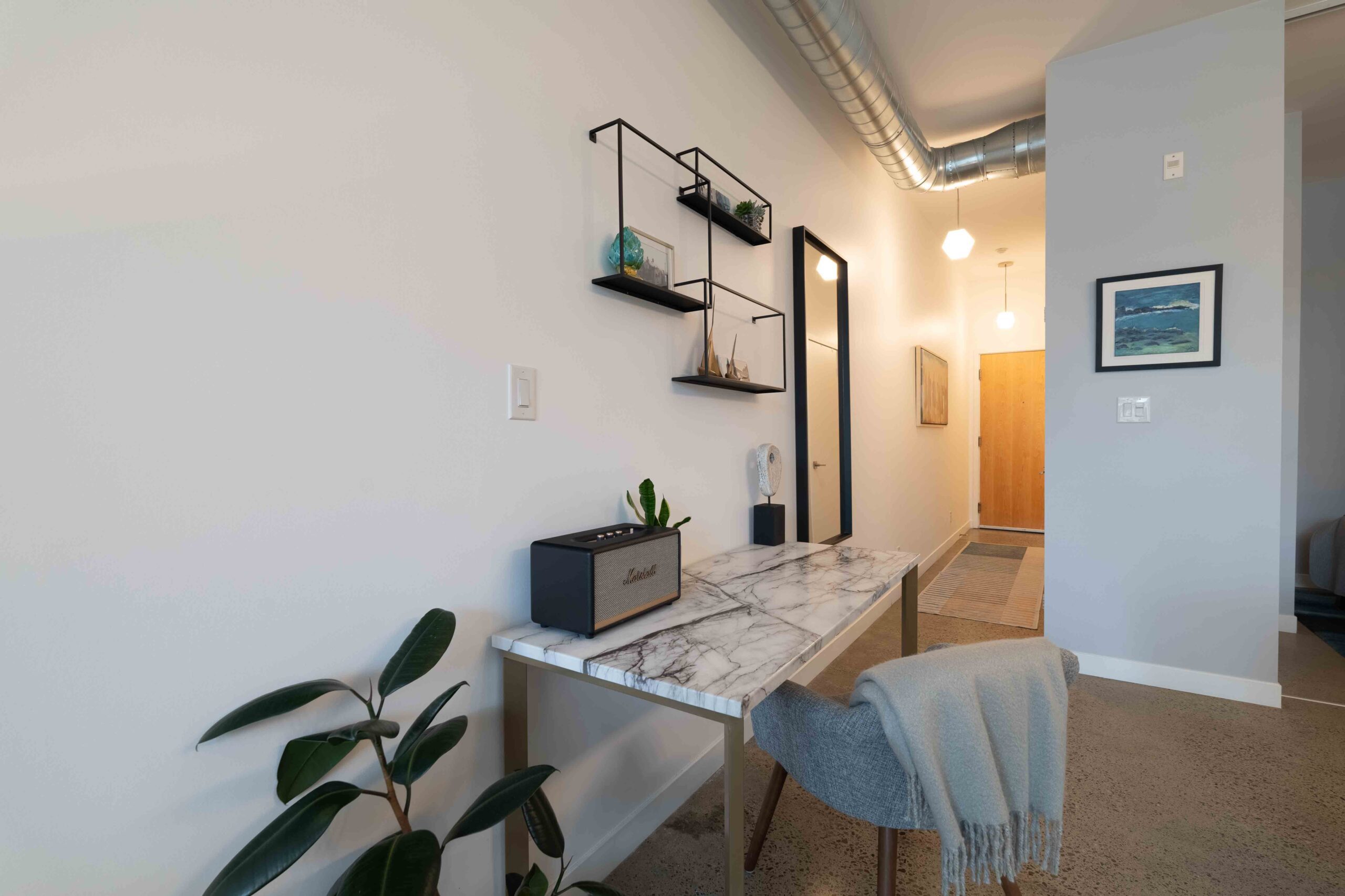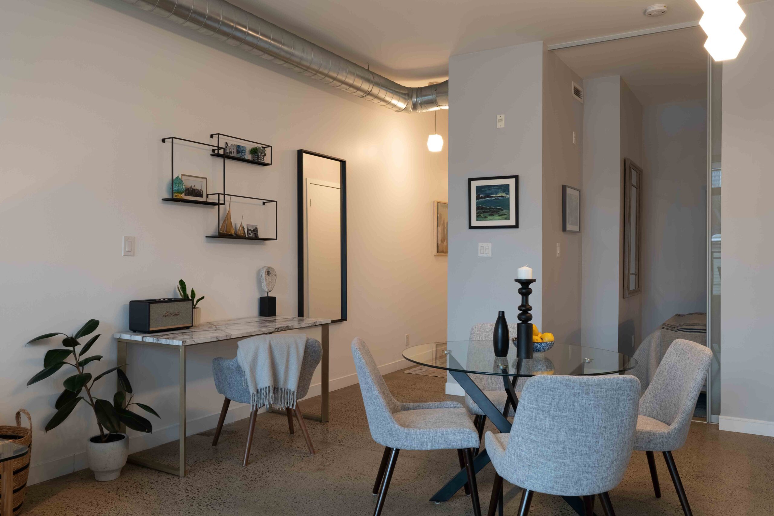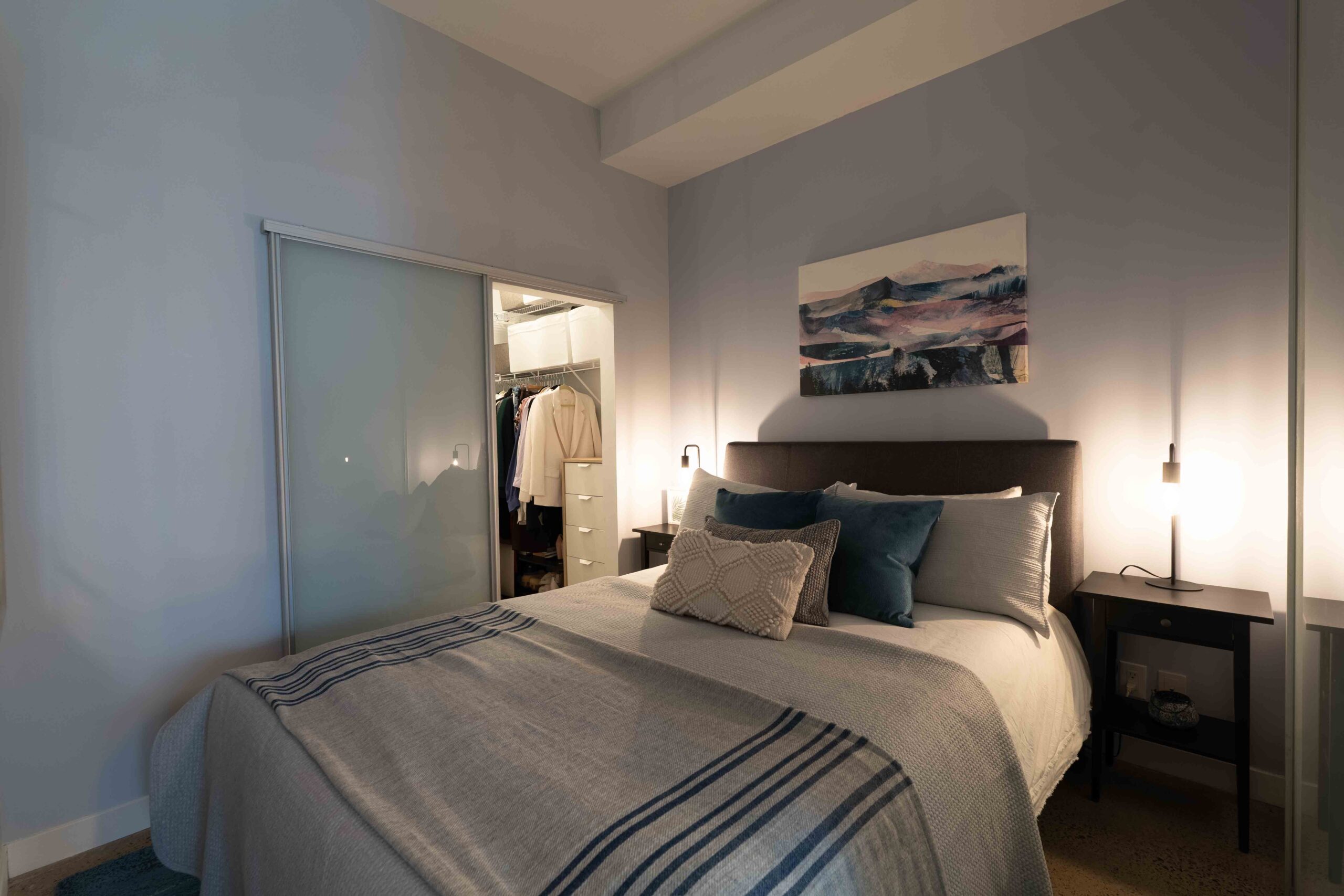 Welcome to stylish loft living at 510 King Street East #215, a bright and spacious one bedroom suite in the heart of Toronto’s vibrant Corktown district. Offering approximately 650 sq. ft., this thoughtfully designed home features soaring 10-foot ceilings, cool modern concrete floors, and floor-to-ceiling windows that fill the space with natural light. Quietly positioned on the backside of the building, the suite enjoys a peaceful setting rarely found in the city. A walk-out from the living area extends your living space outdoors, perfect for morning coffee or evening unwinding. The favourable open-concept layout maximizes flow and functionality, creating an inviting space for both daily living and entertaining. The modern kitchen integrates seamlessly into the living and dining areas, while the well-proportioned bedroom offers comfort and privacy, complemented by a walk-in closet. A rare and valuable feature, this unit includes one of the larger parking spaces in a prime location, with EV chargers available in visitor parking, an exceptional convenience for city living. Residents of this boutique building enjoy premium amenities including a fully equipped fitness centre, stylish party and lounge spaces, rooftop terrace with city views, and concierge service making it one of Corktown’s most desirable addresses. Located in the sought-after Corktown neighbourhood, you are surrounded by beloved cafes, restaurants, and local shops, with the Distillery Historic District, Corktown Common, and St. Lawrence Market just minutes away. Easy access to trails, transit, and the downtown core offers the perfect balance of green space, historic charm, and urban convenience. Experience the character, connectivity, and lifestyle that make Corktown one of Toronto’s most exciting places to call home.