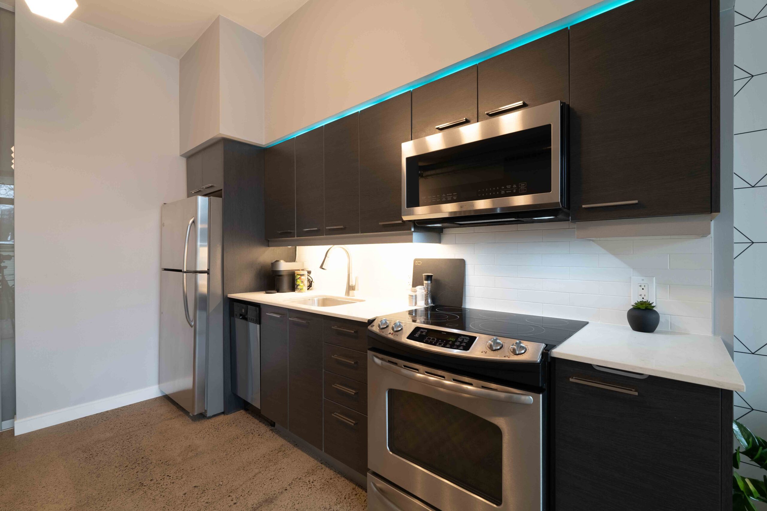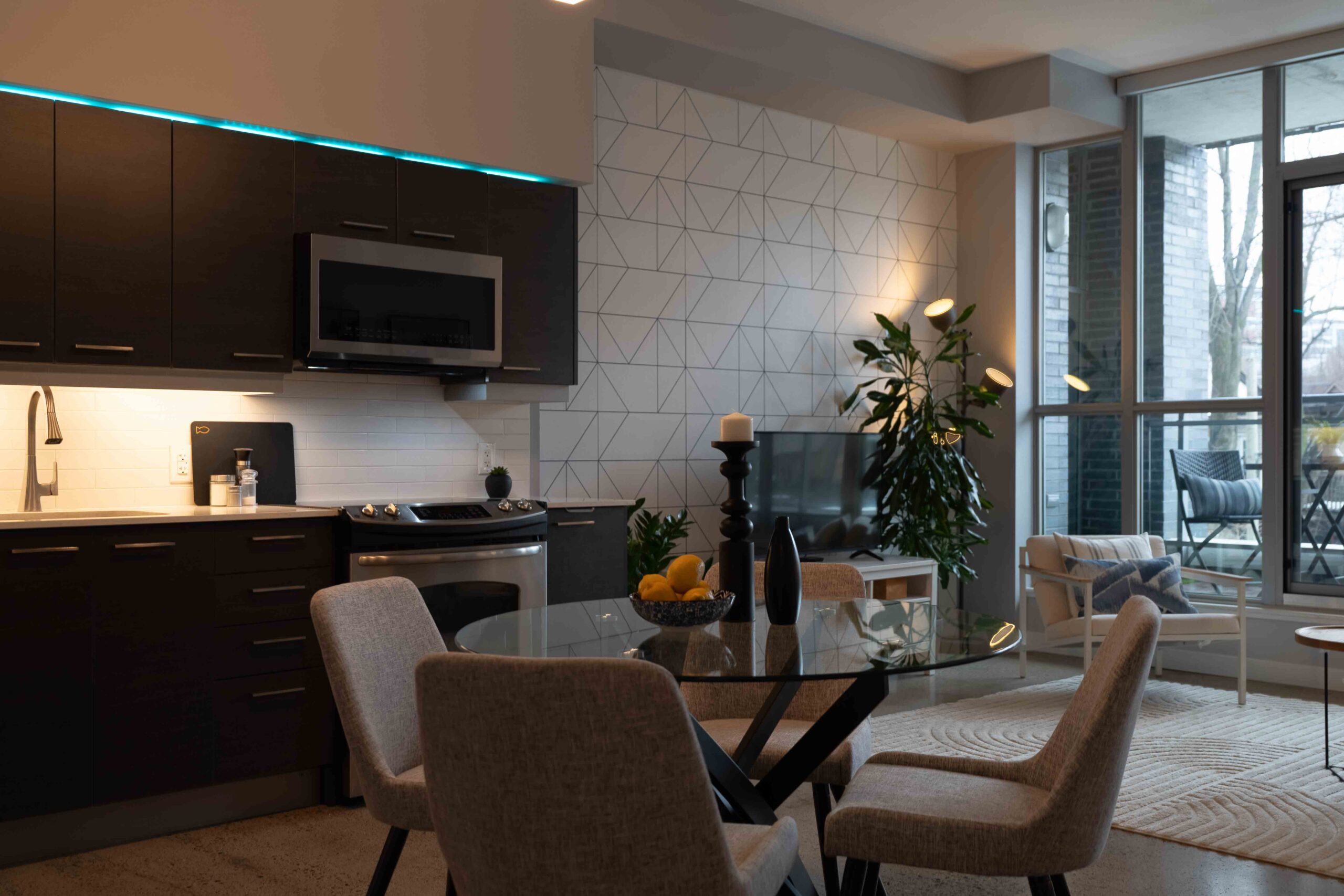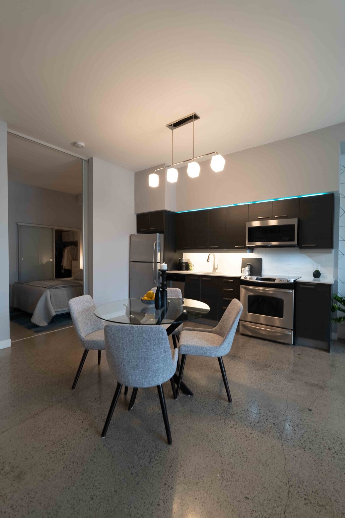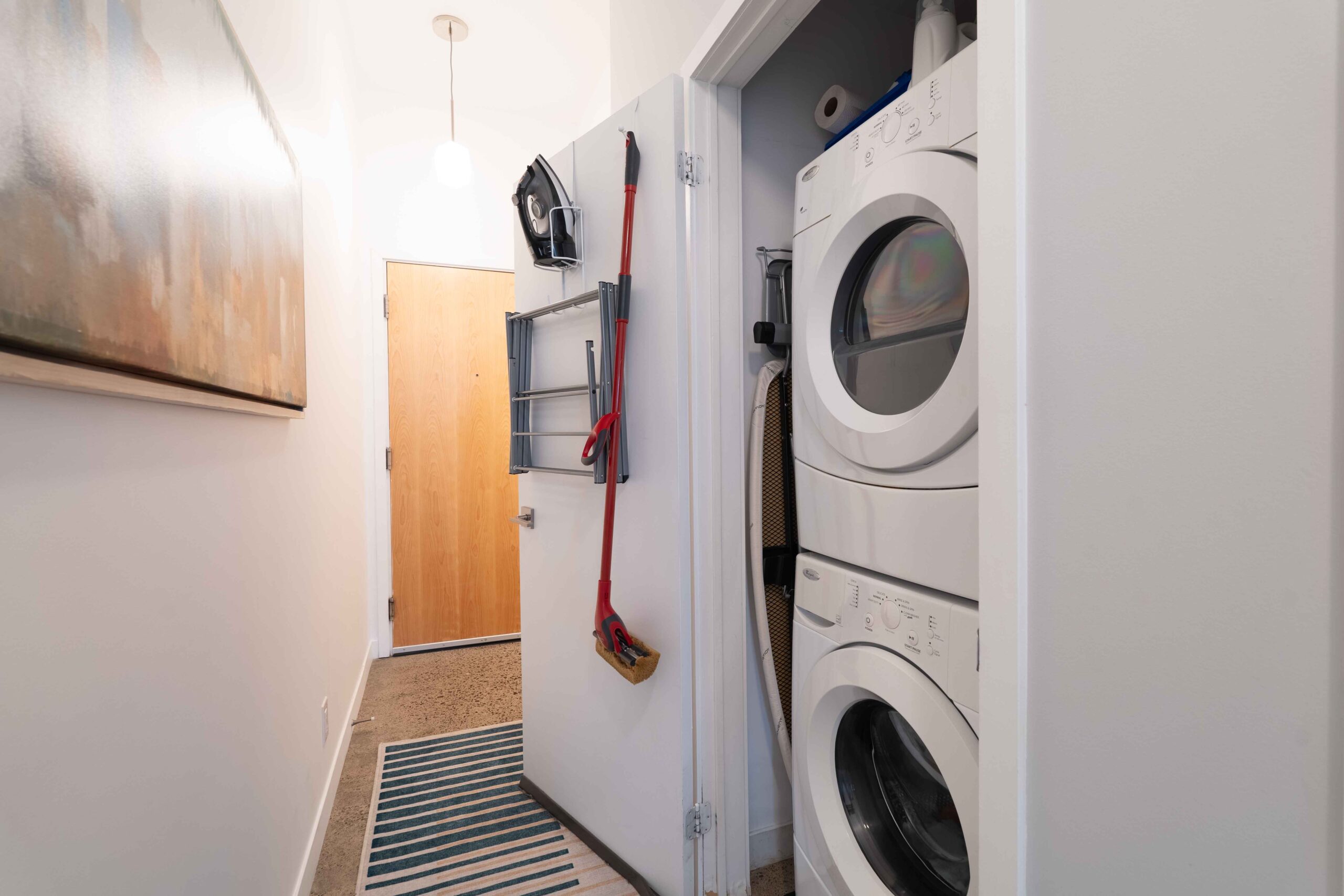Welcome to stylish loft living at 510 King Street East #215, a bright and spacious one bedroom suite in the heart of Toronto’s vibrant Corktown district. Offering approximately 650 sq. ft., this thoughtfully designed home features soaring 10-foot ceilings, cool modern concrete floors, and floor-to-ceiling windows that fill the space with natural light. Quietly positioned on the backside of the building, the suite enjoys a peaceful setting rarely found in the city. A walk-out from the living area extends your living space outdoors, perfect for morning coffee or evening unwinding. The favourable open-concept layout maximizes flow and functionality, creating an inviting space for both daily living and entertaining. The modern kitchen integrates seamlessly into the living and dining areas, while the well-proportioned bedroom offers comfort and privacy, complemented by a walk-in closet. A rare and valuable feature, this unit includes one of the larger parking spaces in a prime location, with EV chargers available in visitor parking, an exceptional convenience for city living. Residents of this boutique building enjoy premium amenities including a fully equipped fitness centre, stylish party and lounge spaces, rooftop terrace with city views, and concierge service making it one of Corktown’s most desirable addresses. Located in the sought-after Corktown neighbourhood, you are surrounded by beloved cafes, restaurants, and local shops, with the Distillery Historic District, Corktown Common, and St. Lawrence Market just minutes away. Easy access to trails, transit, and the downtown core offers the perfect balance of green space, historic charm, and urban convenience. Experience the character, connectivity, and lifestyle that make Corktown one of Toronto’s most exciting places to call home.