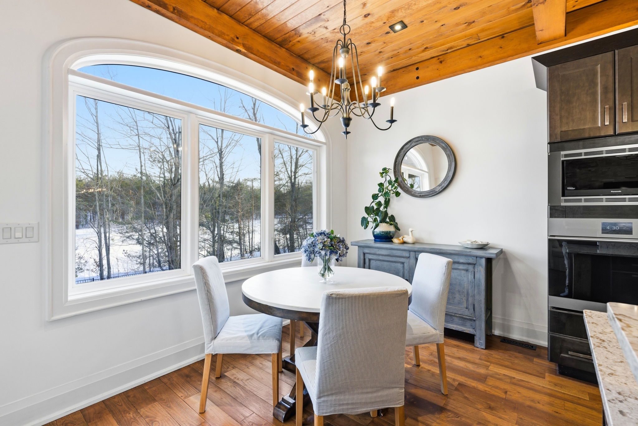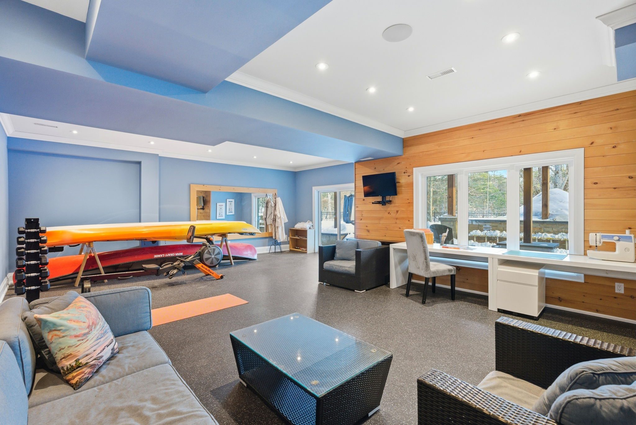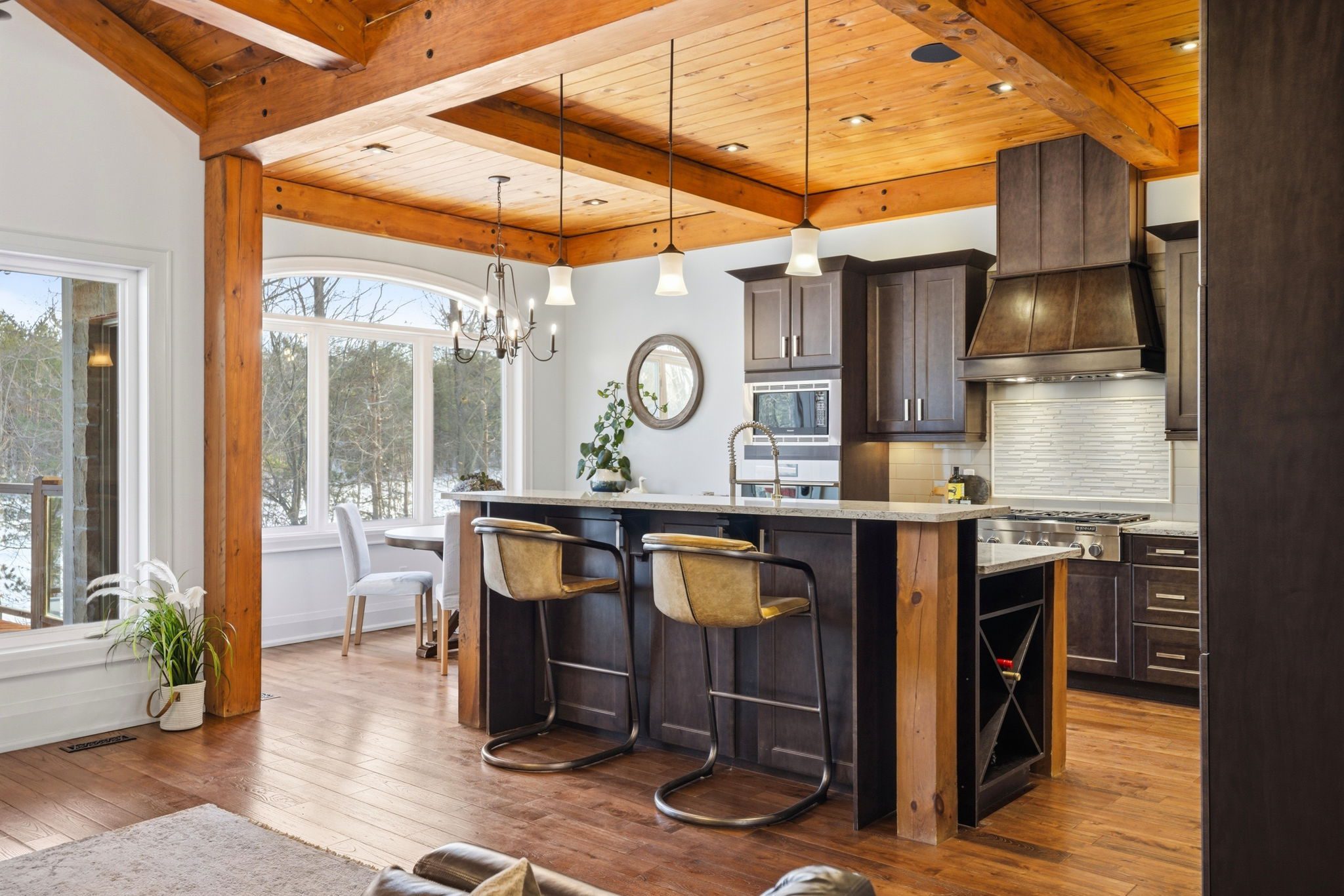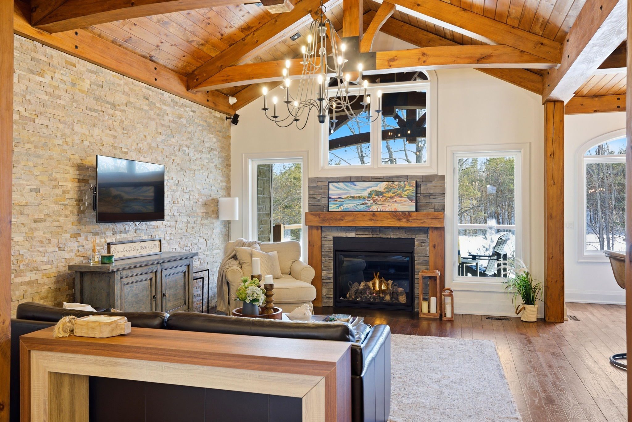 Nestled in the prestigious Horseshoe Valley community, just steps from the resort, trails, and green space, this custom-built bungalow offers privacy, luxury, and stunning south-east views over nature. Situated on a quiet cul-de-sac, the home welcomes you with a grand covered porch entrance and an impressive 14 ft timber arch. Large windows throughout fill the home with natural light. Entertain effortlessly in the great room with a gas fireplace or in the gourmet kitchen featuring quartz counters, backsplash, premium appliances, and a walk-in pantry. The space opens to a large 400 sq.ft. covered deck with expansive views. A built-in surround sound system extends throughout the home, creating an immersive atmosphere for entertaining. The luxury primary suite showcases timber ceilings and a private walk-out to the back porch, along with a spa-like ensuite that includes a steam shower and walk-in closet. Two additional bedrooms, an office, and laundry complete the main level, where solid bamboo hardwood flooring runs throughout. The walk-out basement is a true retreat, featuring a wet bar, theatre room, gym/leisure area, sauna, heated floors, and a bedroom with its own ensuite bathroom. All bathroom floors in the home are heated for added comfort, and the remainder of the home features 10 ft ceilings, enhancing the sense of space and openness. Outdoor living shines with beautiful, professionally landscaped grounds featuring a stone patio, Arctic Spa hot tub, sprinkler system, and fire pit area – perfect for relaxing or hosting under the stars. The property backs onto recreational trails and forest, offering exceptional privacy and direct access to nature. Additional highlights include a heated driveway, a heated three-car garage, and a full Generac backup generator. With unmatched privacy, scenic views, and proximity to local amenities, schools, hospital, and major highways, this property represents a rare opportunity in a highly sought-after community.