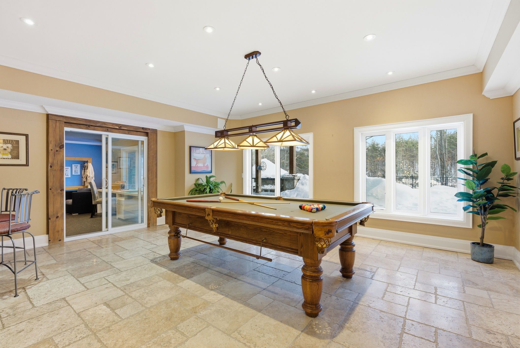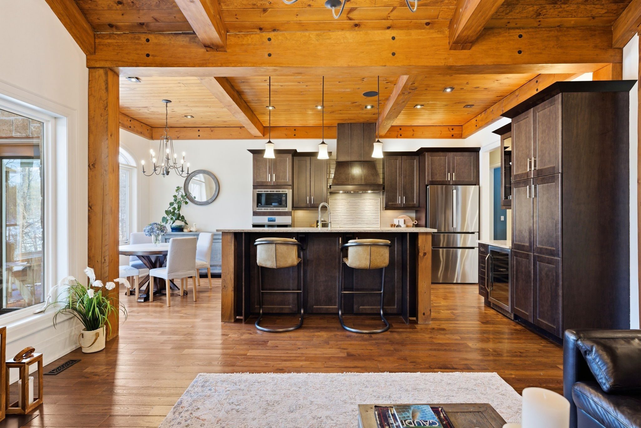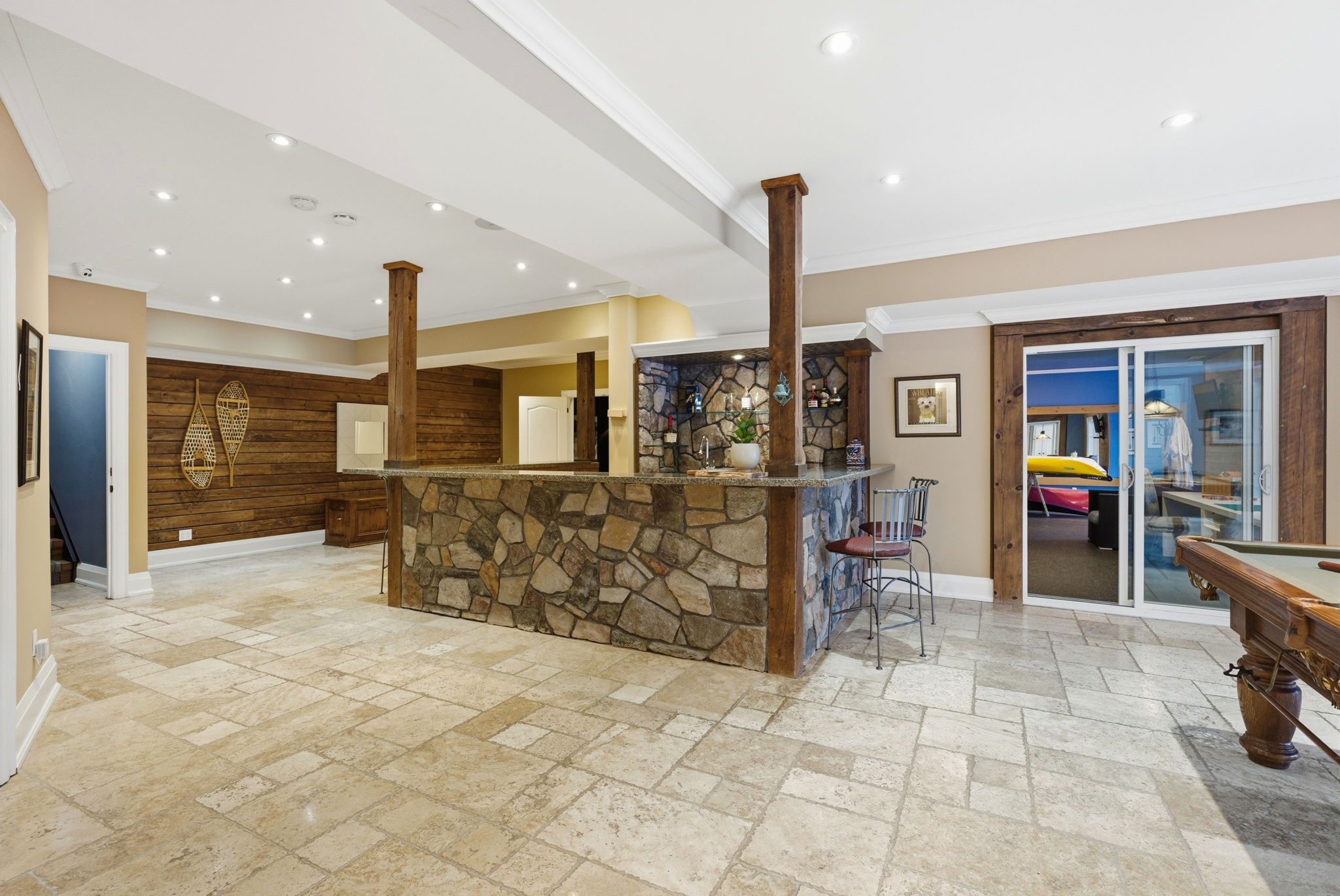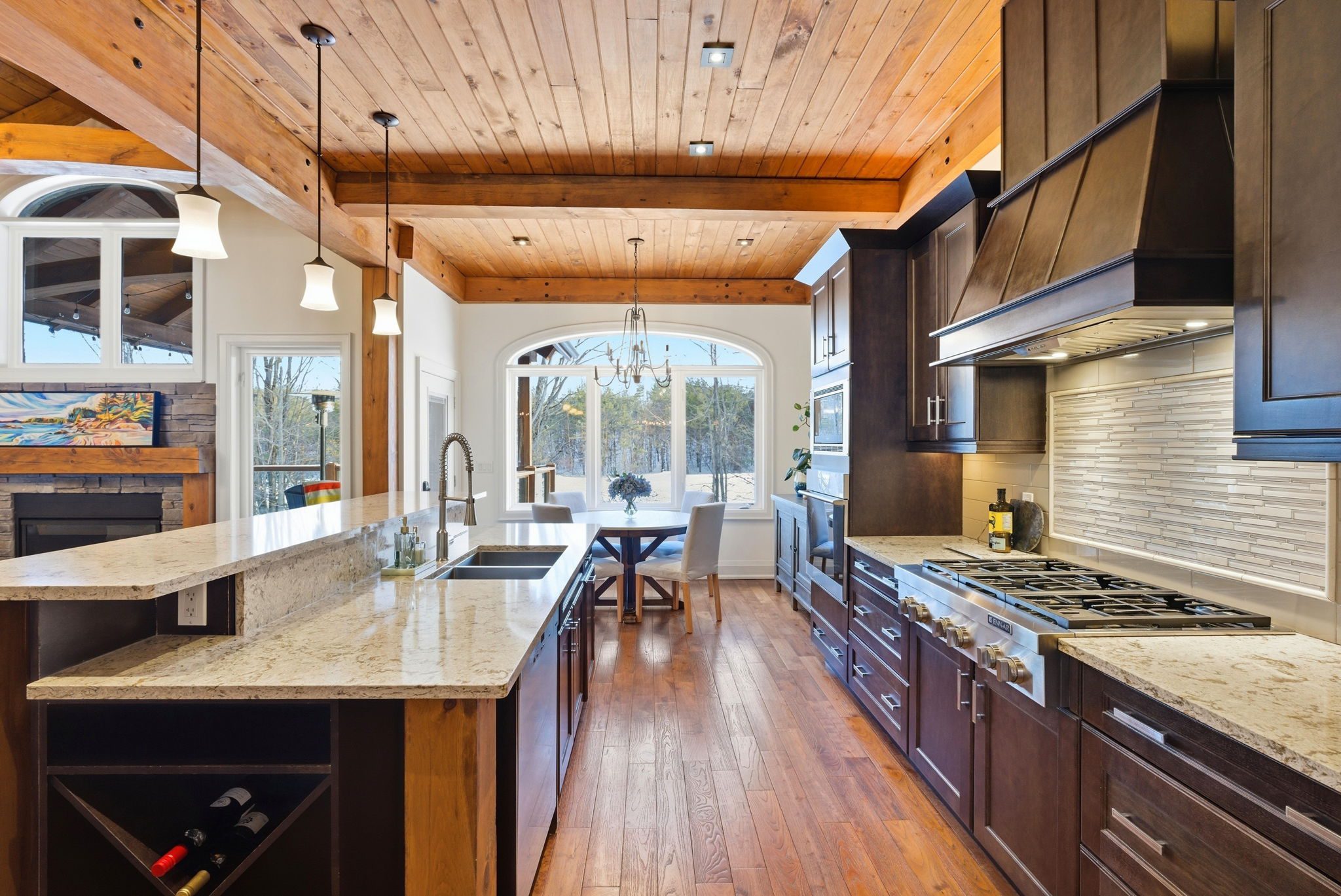 Nestled in the prestigious Horseshoe Valley community, just steps from the resort, trails, and green space, this custom-built bungalow offers privacy, luxury, and stunning south-east views over nature. Situated on a quiet cul-de-sac, the home welcomes you with a grand covered porch entrance and an impressive 14 ft timber arch. Large windows throughout fill the home with natural light. Entertain effortlessly in the great room with a gas fireplace or in the gourmet kitchen featuring quartz counters, backsplash, premium appliances, and a walk-in pantry. The space opens to a large 400 sq.ft. covered deck with expansive views. A built-in surround sound system extends throughout the home, creating an immersive atmosphere for entertaining. The luxury primary suite showcases timber ceilings and a private walk-out to the back porch, along with a spa-like ensuite that includes a steam shower and walk-in closet. Two additional bedrooms, an office, and laundry complete the main level, where solid bamboo hardwood flooring runs throughout. The walk-out basement is a true retreat, featuring a wet bar, theatre room, gym/leisure area, sauna, heated floors, and a bedroom with its own ensuite bathroom. All bathroom floors in the home are heated for added comfort, and the remainder of the home features 10 ft ceilings, enhancing the sense of space and openness. Outdoor living shines with beautiful, professionally landscaped grounds featuring a stone patio, Arctic Spa hot tub, sprinkler system, and fire pit area – perfect for relaxing or hosting under the stars. The property backs onto recreational trails and forest, offering exceptional privacy and direct access to nature. Additional highlights include a heated driveway, a heated three-car garage, and a full Generac backup generator. With unmatched privacy, scenic views, and proximity to local amenities, schools, hospital, and major highways, this property represents a rare opportunity in a highly sought-after community.